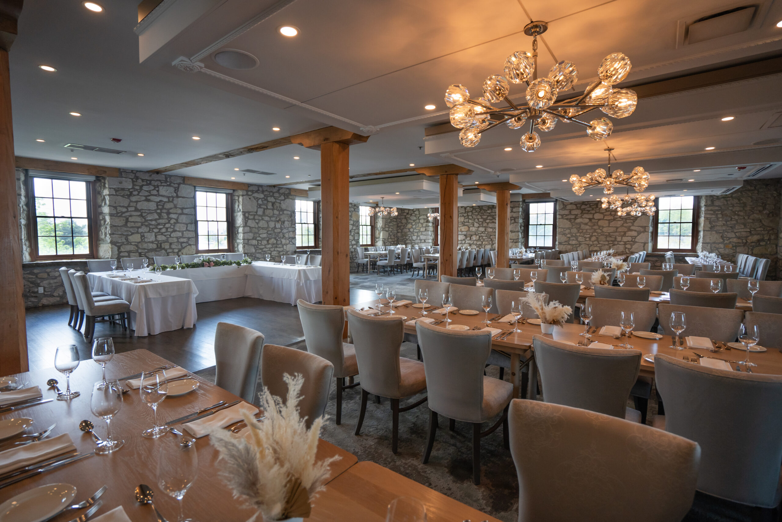 Set in a beautifully restored 19th-century mill along the Grand River, Cambridge Mill combines rich heritage architecture with modern event amenities. With multiple distinctive event rooms, curated packages, à la carte menus, and attentive service, it’s a refined backdrop for everything from corporate luncheons and team retreats to milestone birthdays or holiday gatherings.