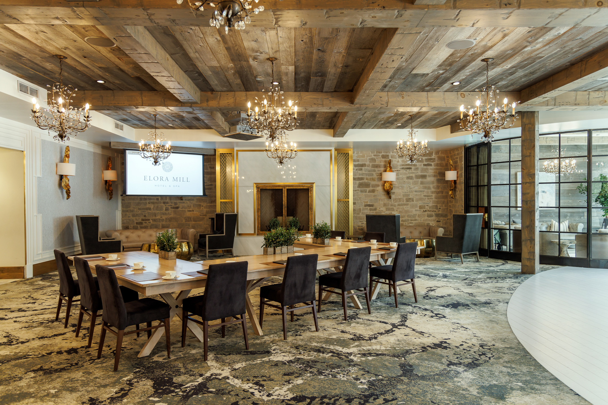 Perched on cliffs above the gorge in charming Elora, Elora Mill Hotel & Spa offers elegant, fully-equipped function spaces, from intimate rooms to a grand hall with rooftop terrace, perfect for conferences, corporate off-sites, retreats, or celebratory events. The addition of on-site accommodations and spa facilities makes it especially suited for multi-day corporate gatherings or destination-style social events.