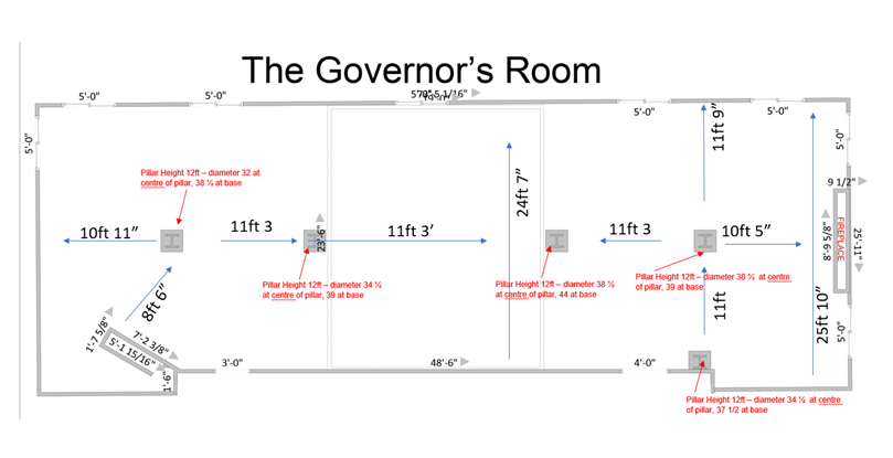- Pillar’s – 10” wide x 10’ high (4 pillars in the Governor’s Room)