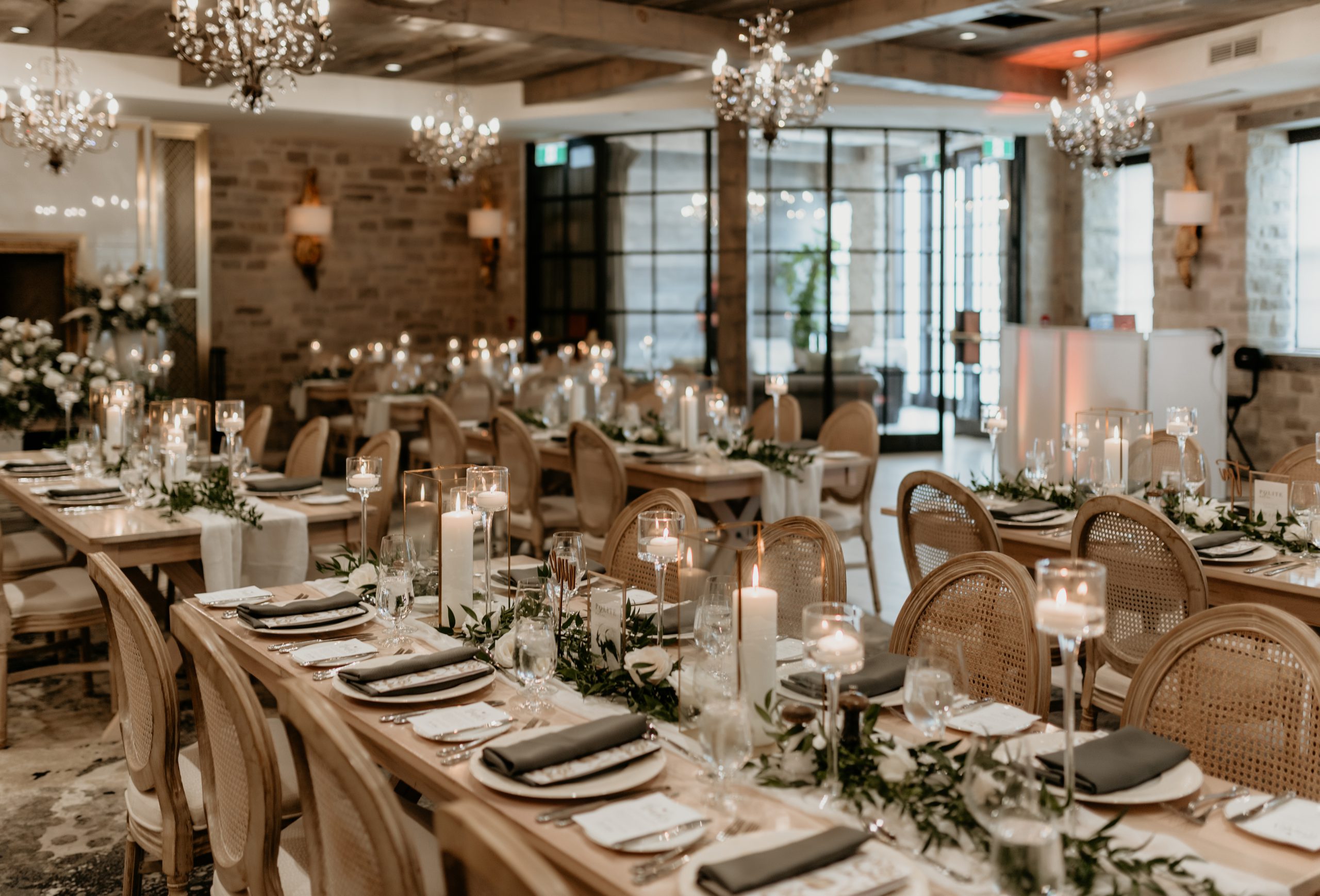 If you are planning on ordering custom charger plates, glassware, cutlery, plateware and linens, these items would need to be delivered the day prior to ensure enough time to set the room and taken home the evening of the wedding. We recommend ordering 5% extra for your cutlery and linen napkins. Please note the Elora Mill cannot be held responsible for any missing items.