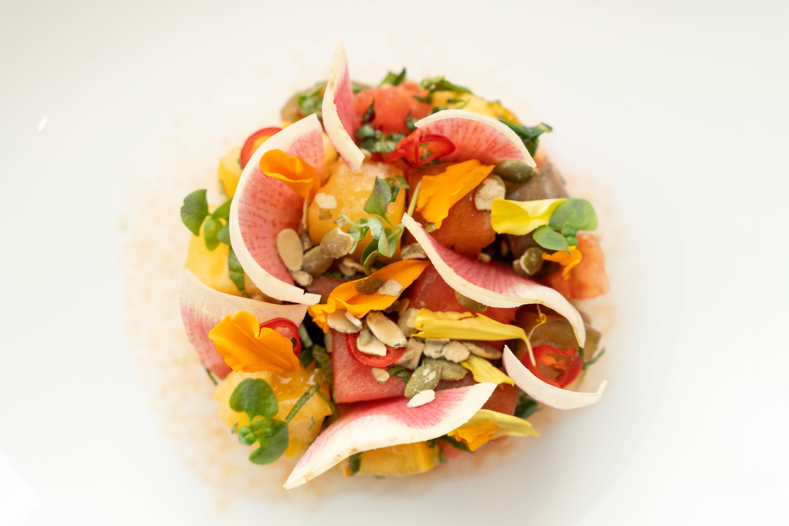 At Elora Mill, dining is an expression of the seasons. Our culinary team crafts menus that evolve throughout the year, inspired by the bounty of our own Pearle Farm and the surrounding region. Each wedding features à la carte entrées ordered tableside, allowing guests to enjoy a restaurant-quality experience within one of Ontario’s most breathtaking settings. Couples are invited to a complimentary menu tasting, where they can experience the season’s freshest ingredients and personalize their selections with guidance from our chefs.