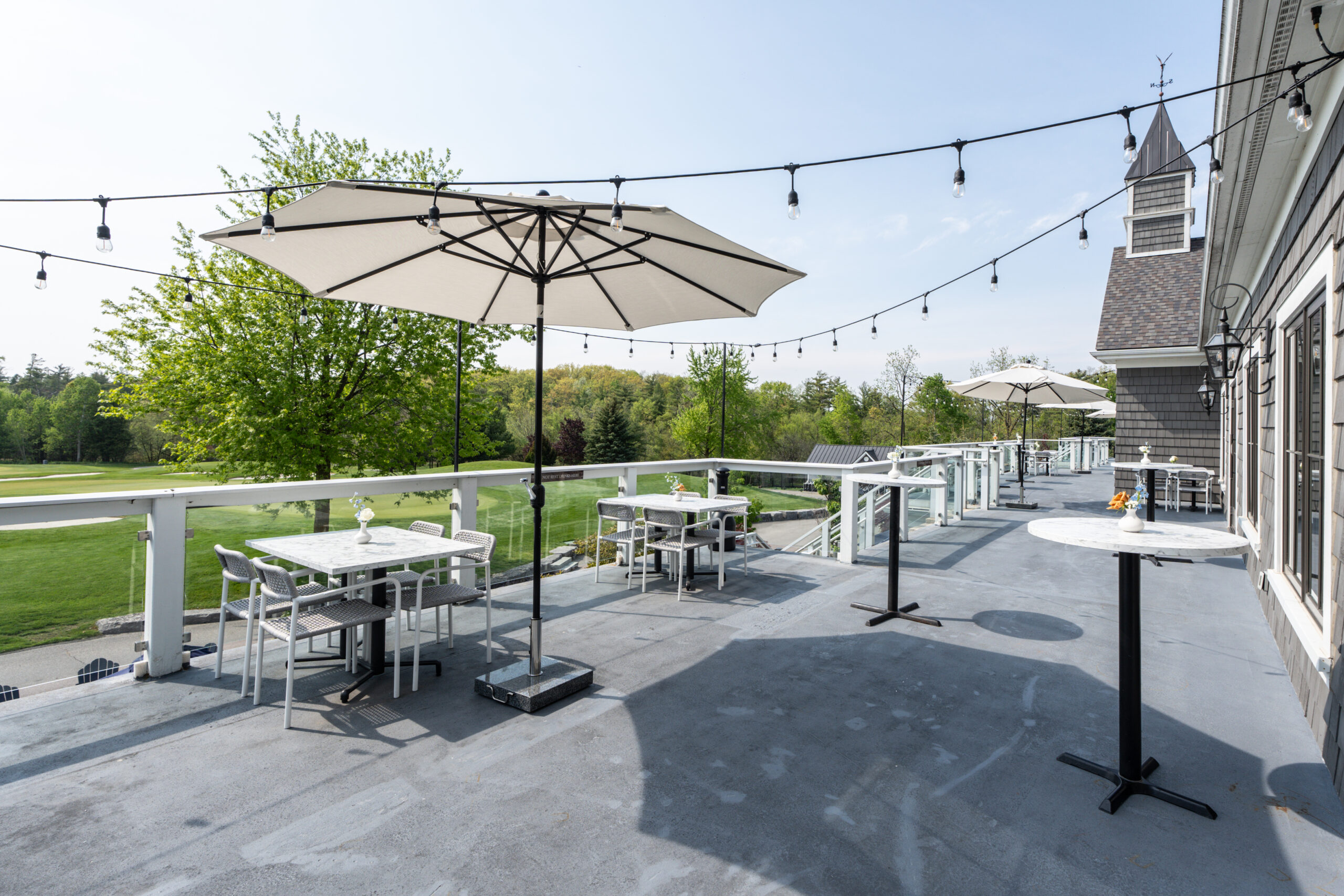 A private outdoor terrace, overlooking the golf course, is the perfect place for pre and post dinner cocktails.
