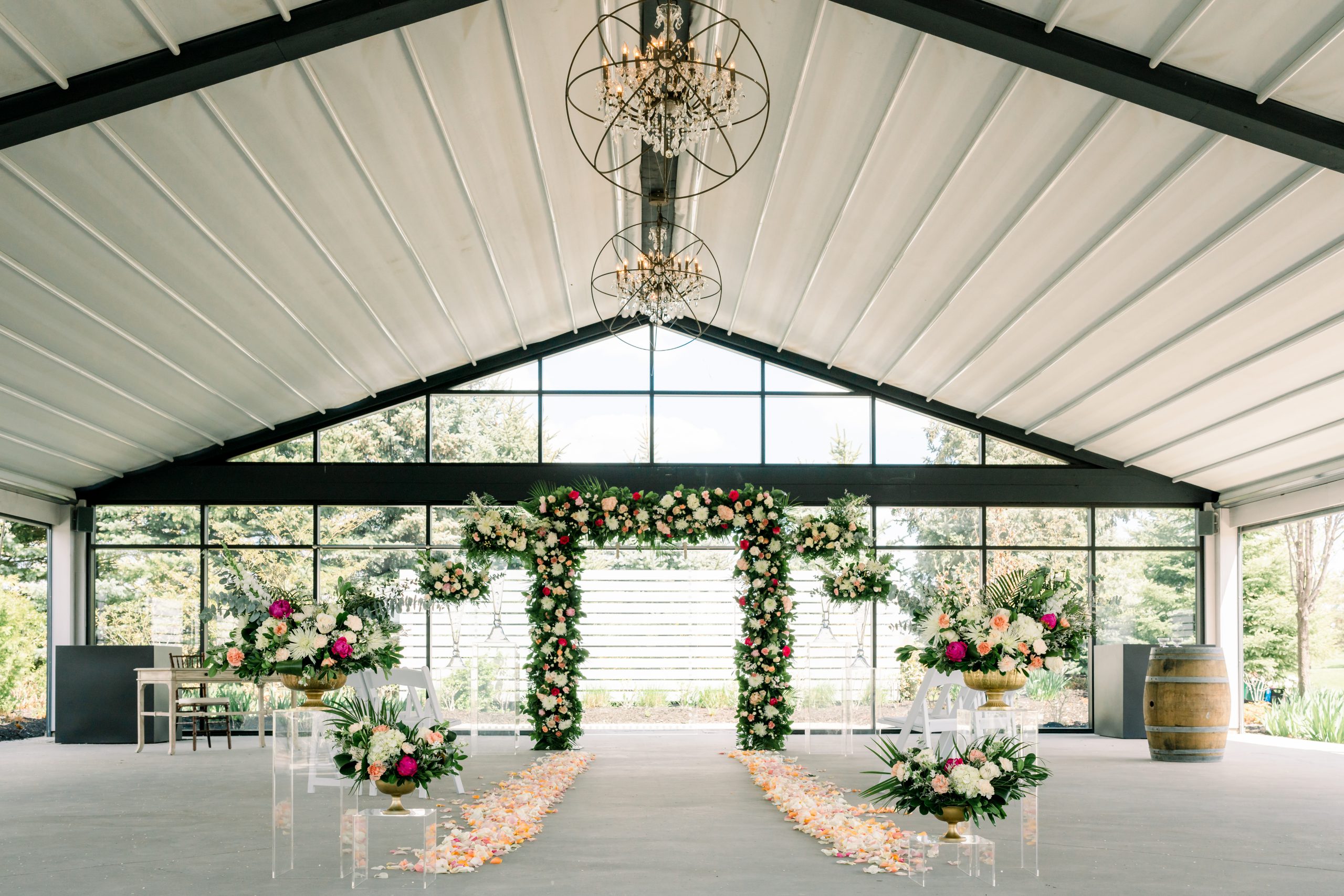 Nestled among rolling hills, a forest with groomed trails, and with a cascading waterfall feature, this classic setting offers a stunning outdoor backdrop for your big day. With sweeping views in every direction, it’s a peaceful, picturesque escape where nature sets the tone for a celebration that feels both timeless and elegant.